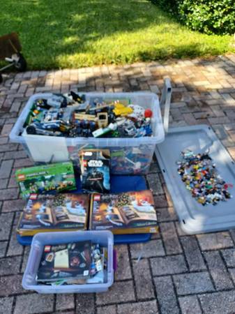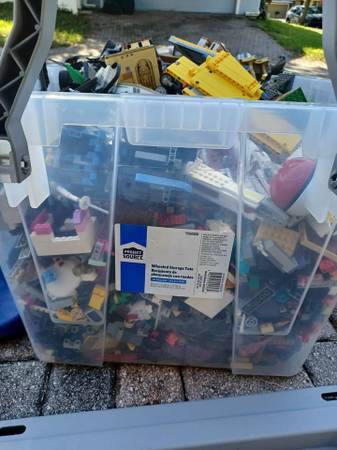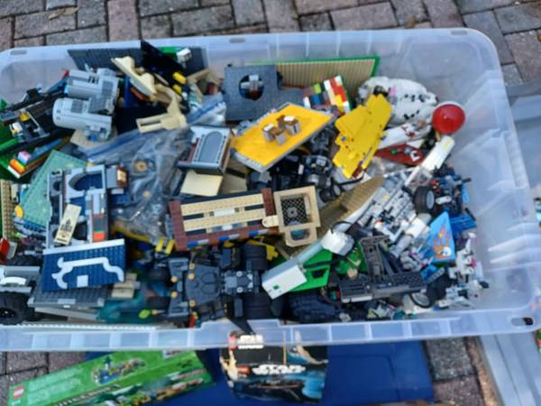 Legos Large Bin of Authentic Legos from Various sets including many little people, new sets and Some Manuals