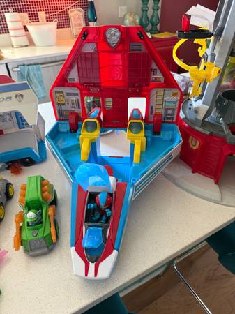 1. Paw Patrol Pups Super Paws Mighty Jet Command Center Toy Spaceship with Ryder figure (spaceship comes out and shoots discs).