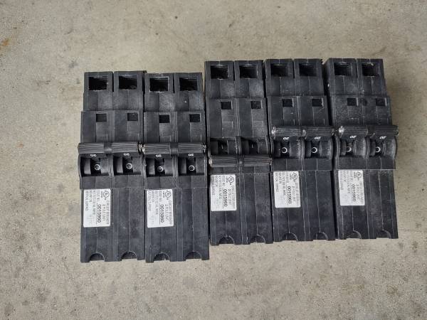 For sale is a lot of 5 Carling Technologies DP-4094 2-Pole Circuit Breaker in excellent cosmetic condition. These are industrial circuit breakers. You are buying 5 of them for only $ 120 cash. I also have another lot of 5 carling Technologies DP-4094 circuit breakers for only $ 100 cash. Local pick up. Serious buyer please.