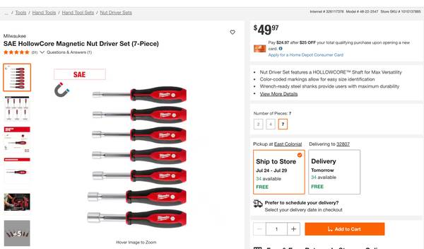 Includes: (1) 9/16 in. HollowCore Magnetic Nut Driver, (1) 1/2 in. HollowCore Magnetic Nut Driver, (1) 7/16 in. HollowCore Magnetic Nut Driver, (1) 3/8 in. HollowCore Magnetic Nut Driver, (1) 11/32 in. HollowCore Magnetic Nut Driver, (1) 5/16 in. HollowCore Magnetic Nut Driver, (1) 1/4 in. HollowCore Magnetic Nut Driver