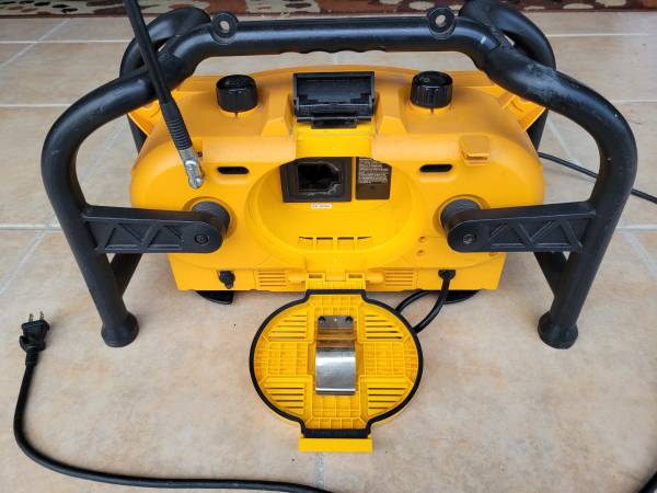 DeWalt 7.2v-18v job site radio. Works and sounds great. Can run off a DeWalt battery or AC plug. Charges the DeWalt battery when plugged in.