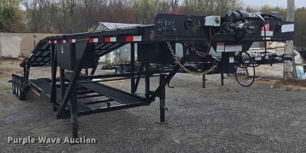 3 - 7000# axles , tool box , Equipped with pintle type fifth wheel gooseneck pin but can be converted to ball hitch tube, GVWR 20000# Aluminum ramps included ,, LED lights , Stake pockets and rub rail , Expanded heavy floor .