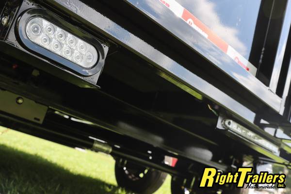 8,000 GVWR, welded a-frame tongue, tongue jack, C-channel tongue (heavy duty), single hydraulic cylinder lift, 31" tall 12GA. sides, 15" RADIAL tires and wheels, all DOT approved lighting, LOW RIDER, SPARE MOUNT, TARP INCLUDED