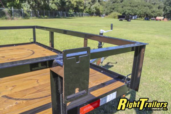TANDEM AXLE welded a-frame tongue, tongue jack, C-channel tongue (heavy duty), 2 5/16" coupler (4) tie down loops, pressure treated 2x8 wood deck, 15" tires and wheels, tubular uprights in rear ramp, heavy duty mesh on ramp, all DOT approved lighting, POWDER COATED FRAME (long paint life), LED lights, radial tires, spare mount, BRAKES ON 1 AXLE