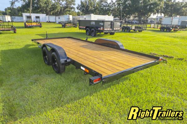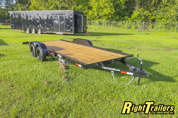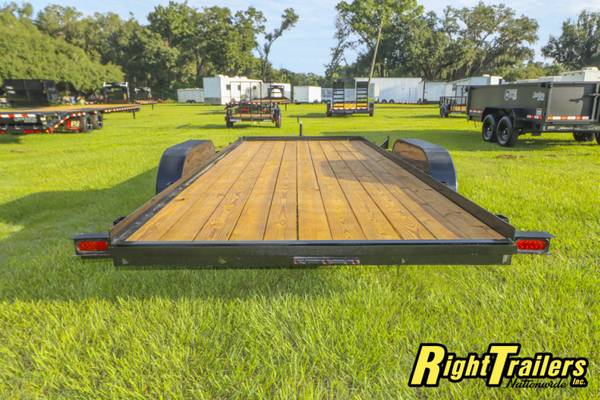 CHW7X187K CAR HAULER, All steel frame construction, welded a-frame tongue, tongue jack,C-channel tongue (heavy duty), 2 5/16" coupler, Stake Pockets, pressure treated 2x8 wood deck,15" tires and wheels, 5' Pull Out Ramps, all LED DOT approved lighting, POWDER COATED FRAME (long paint life), radial tires, spare mount, BRAKES ON Both Axles