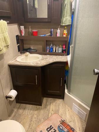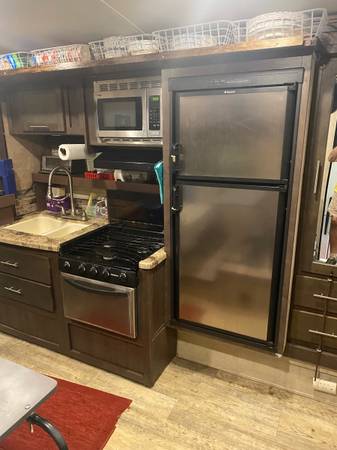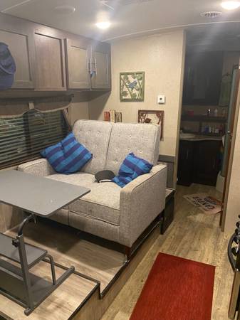 Very little use, stored inside, AC/heat/2 tv's/reclining love seat/heavy duty cargo carrier/inside and outside kitchens/lots of storage. MUST SEE TO APPRECIATE. Lots of upgrades