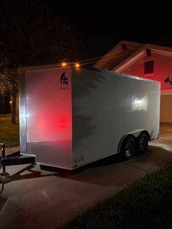 2022 Spartan (8.5×14) Enclosed Trailer with a 7ft Interior height, Rhino coated flooring, side door, dual 3500lb axles, electric brakes, E-tracks on both walls, LED lighting inside & out.