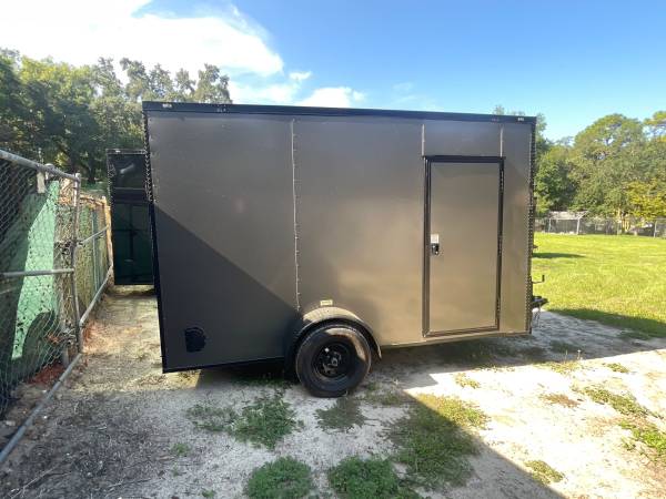 Up for sale is a brand new charcoal color cargo trailer 6 x 12 premium poly core exterior with extra tall 7 foot interior with blackout package title on hand located in Orlando Florida price is 3800 cash. Please call. 407-534-4seven69 phone calls or text only I will not respond to any emails too many scams. This trailer is located in Orlando Florida come by and take a look at it.