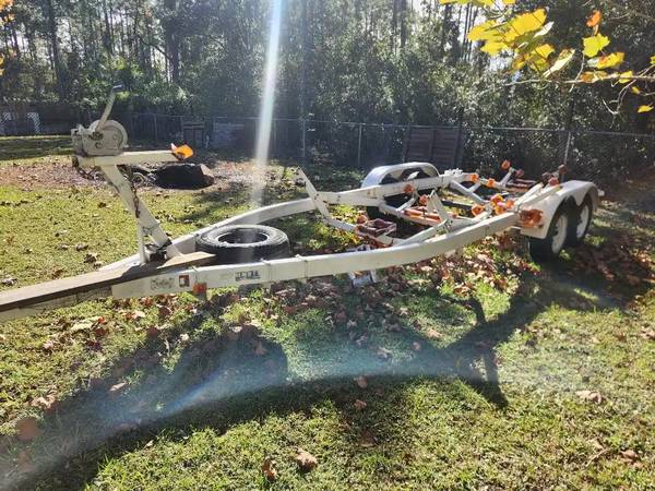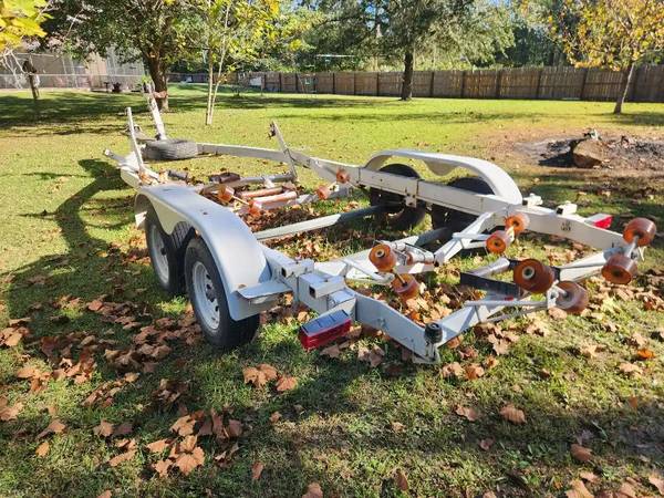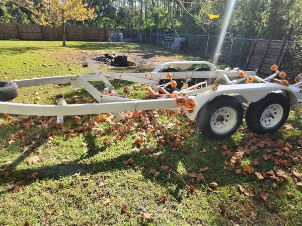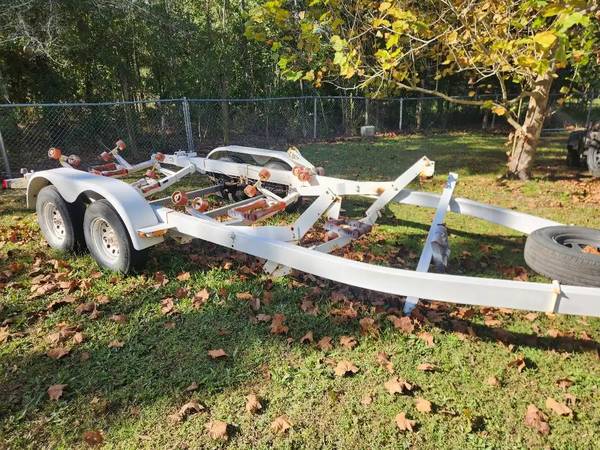 Needs work, can be used for Parts/scrap metal, or repair. 2 crossmembers need to be replaced. Rollers, tires, winch, breaks all work fine.
