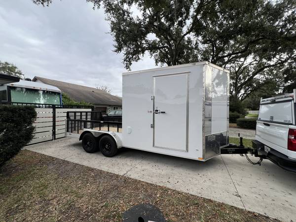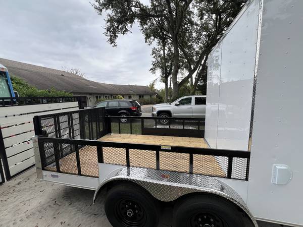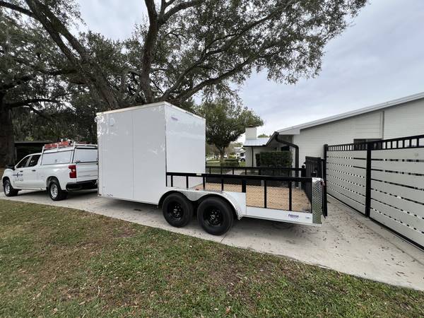 Brand new 18 Foot hybrid utility trailer, 8 foot enclosed trailer with side door and 10’ flat deck with scissor fold ramp. Trailer has twin 5200 lb 6 lug axels, Led lights and tandem brake axles. I ordered this trailer and had it shipped to me and once it got here I realized that my measurements were wrong and the trailer is not going to work for what I need. I just spent $11K on the trailer and it was delivered yesterday, asking $9500 OBO will consider partial trade for a 14K bumper pull dump trailer or 16’x7 utility trailer