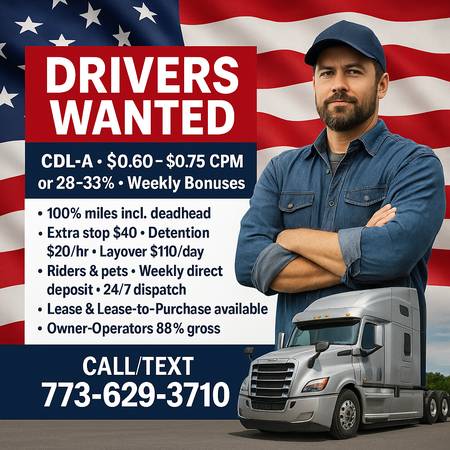 Looking to hire professional safe drivers with two or more years of experience and clean driving record