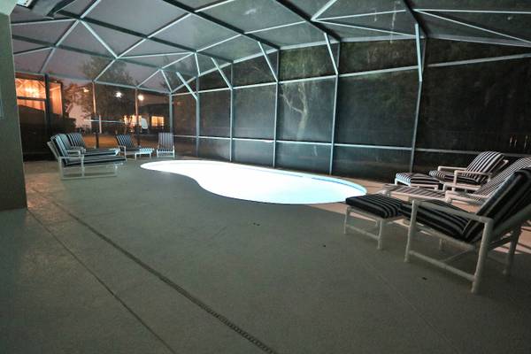 Outdoors the pool area faces west and enjoys the Florida sunshine throughout the afternoon until the end of the day. Enjoy a meal under the covered shady area, splash around in the crystal clear pool, or soak up the sun on the loungers. A BBQ is provided for guest use – a charge applies if you would like this prepared for you (full tank of propane + clean before/after stay). Pool heating available at an additional cost.