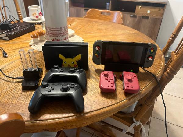 Selling my Nintendo Switch. Comes with everything pictured. I bought it brand new and has never given me any issues. I wiped the memory so when you turn it on it’ll have all the new console prompts. I HAVE NO GAMES for it. It comes with everything you see pictured here. Everything works perfectly. Price is firm. This is roughly a $400-450 value. If you have any other additional questions please feel free to ask.