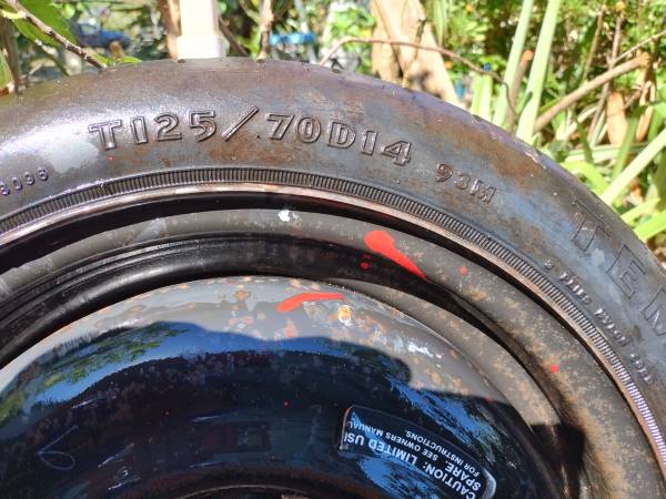 Jeep Cherokee spare emergency wheel . Bolt circle 4.5 inches x 5 lugs Very good condition Only 25