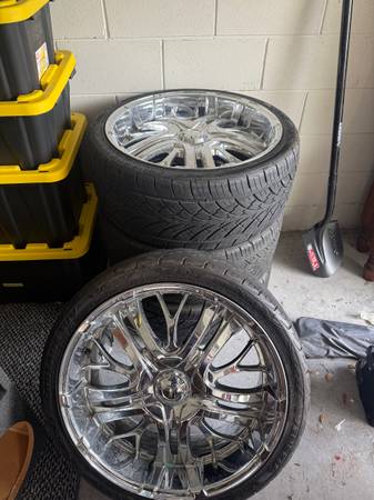 22 inch 5 lug universal rims and tires. Asking price $1000 or best offer.